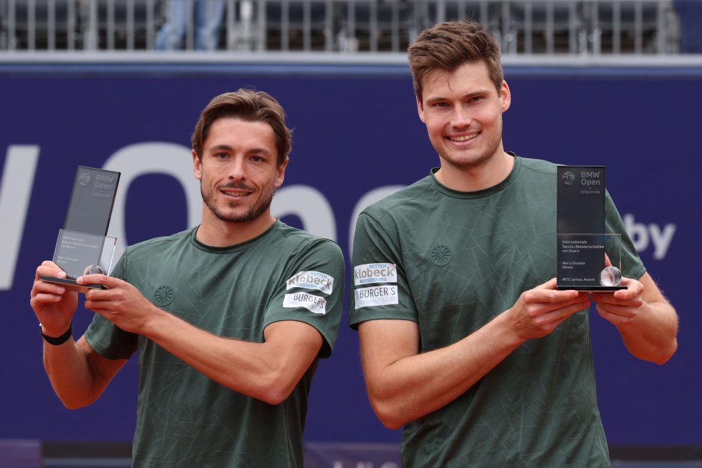 Ein richtiges Märchen hat das deutsche Doppel Jakob Schnaitter und Mark Wallner erlebt. Über die Qualifikation waren die beiden Bayern ins Hauptfeld gekommen, überraschend holten sie sich heute den Titel bei den BMW Open by Bitpanda – ihren ersten großen Titel auf der ATP-Tour überhaupt. Den ersten Satz hatten sie gegen die französische Paarung Arribagee/Olivetti mit 6:4 gewonnen, den zweiten Durchgang mussten die beiden im Tiebreak abgeben. Danach gab´s im Matchtiebreak kein Halten mehr. Die Fans feuerten die beiden lautstark an, Jakob Schnaitter und Mark Wallner blieben nervenstark und konnten nach 1:44 Stunden ihren zweiten Matchball verwandeln (6:4; 6:7 (4); 12:10). Und danach ließen sie sich richtig feiern: „Das kann man noch gar nicht glauben, es ist einfach verrückt“, so Jakob Schnaitter. „Es ist ein Traum, der in Erfüllung geht“, ergänzte Mark Wallner, „eine unglaubliche Geschichte“.