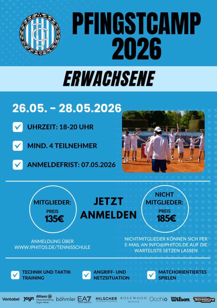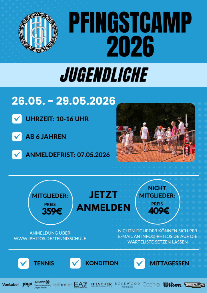 Das Camp wird bei den Jugendlichen täglich von 10:00 bis 16:00 stattfinden. Bei den Erwachsenen findet das Camp von 18:00 – 20:00 Uhr statt. Für gute Betreuung sowie ein tägliches Mittagessen wird gesorgt. Das bedeutet 4 Tage voller Spaß, Lernen und sportlicher Entwicklung auf dem Tennisplatz beim MTTC Iphitos.